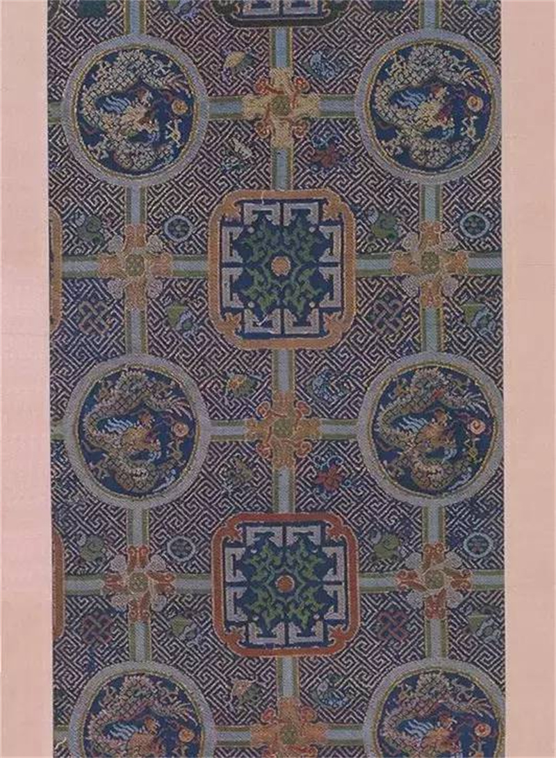 蓝地彩织团龙天华锦裱片