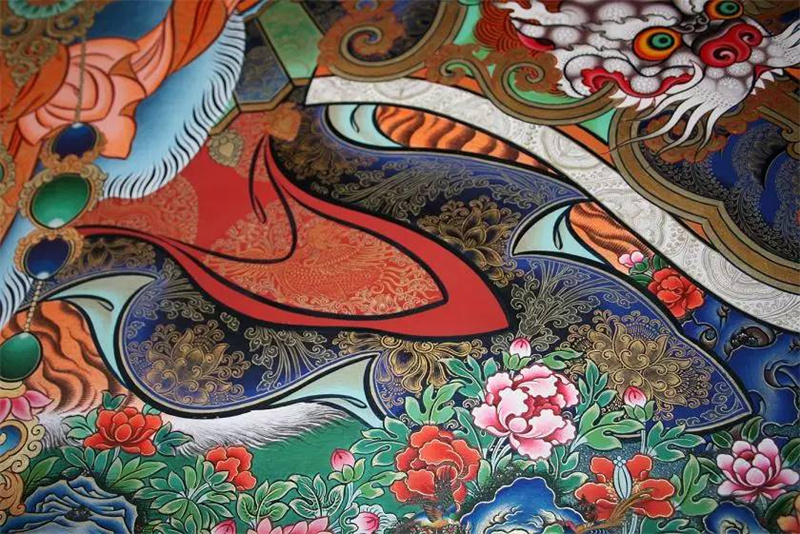 然而其绘制要求严苛、程序极为复杂,必须按照经书中的仪轨及上师的要求进行,包括绘前仪式、制作画布、构图起稿、着色染色、勾线定型、铺金描银、开眼、缝裱开光等一整套工艺程序。