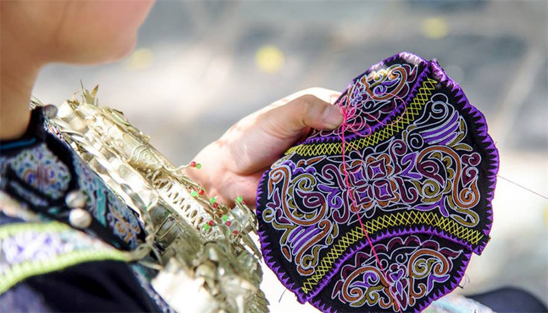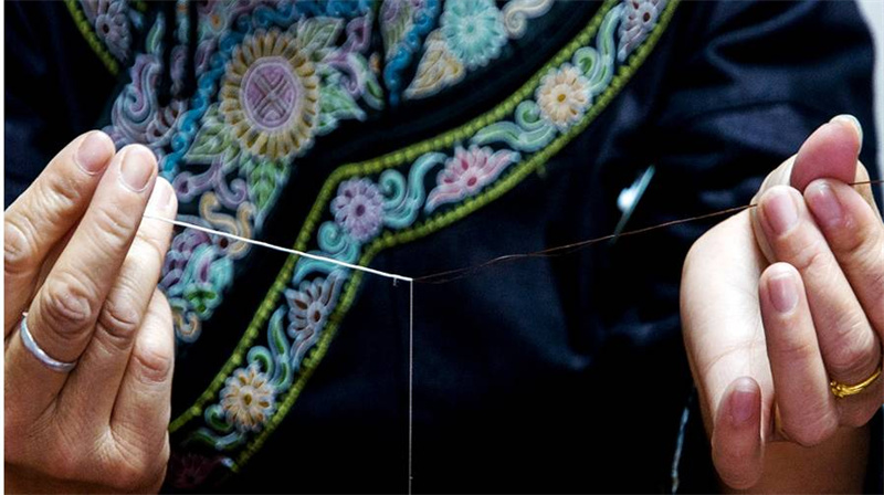 水族马尾绣是贵州省黔东南水族妇女世代传承的一种特殊刺绣技艺,主要在贵州黔东南州三都境内的水族村寨内传承,被称为“刺绣艺术的活化石”。如今已入选首批国家级非物质文化遗产名录,是研究水族民俗、民风、图腾崇拜及民族文化的珍贵艺术资料。